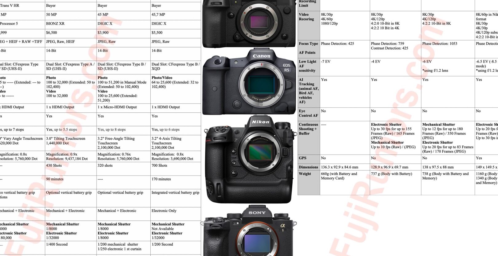 Current Best Comparisons for Fuji Film Cameras